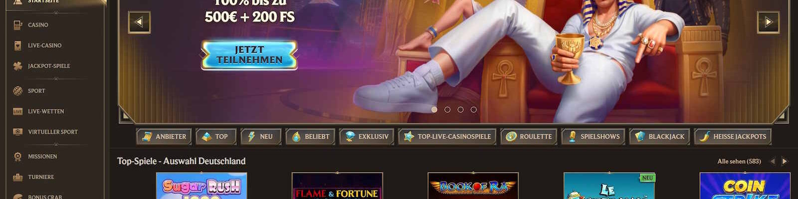 | Bonus | 100% Bonus bis 500 € + 200 Freispiele |